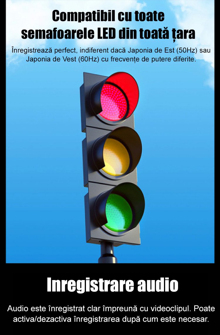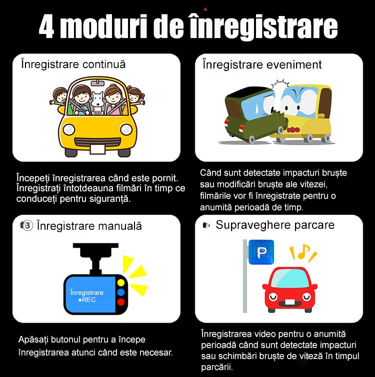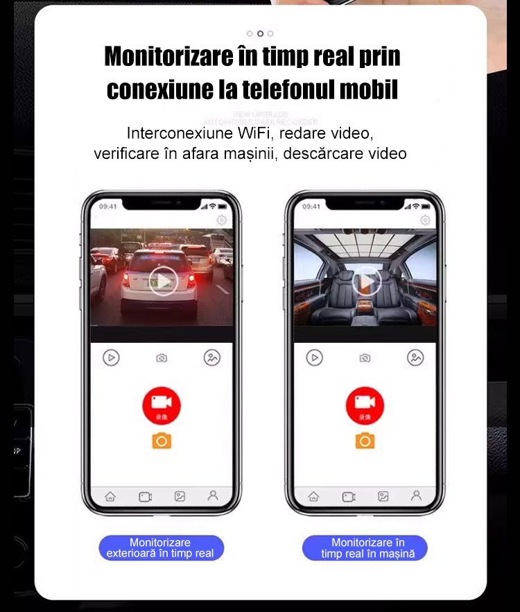 Recorder auto HD WiFi cu trei înregistrări